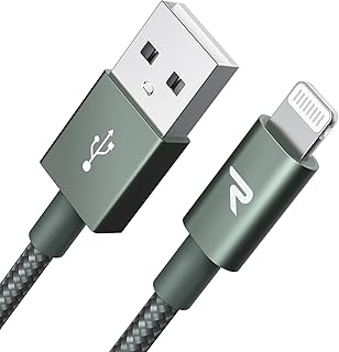 RAMPOW Câble pour iPhone [Certifié Apple MFi] en Fibre de Nylon Tressé avec Connecteur Ultra Résistant pour iPhone 11/11 Pro/X/XS/XR/8/8 Plus/7/7 Plus/6s/6s Plus/6/6 Plus, etc - 1m Vert Nuit