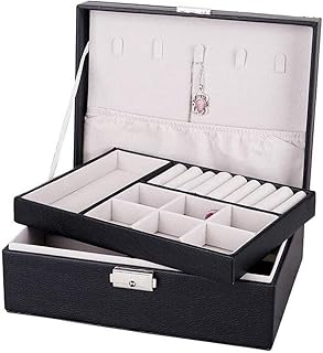 Belons Boîte à bijoux pour femmes et filles - Boîte de rangement à bijoux avec 2 couches - En cuir synthétique - Organiseur de bijoux pour boucles d'oreilles, colliers, bagues, bracelets - Noir