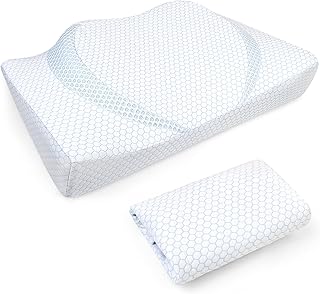 BESFAN Oreiller Ergonomique Orthopédique, Cervical Oreiller Orthopédique, Oreiller en Mousse à Mémoire de Forme avec Soutien du Cou et Soulager Les Douleurs au, 2 Taies d'oreiller, 2 Hhauteurs