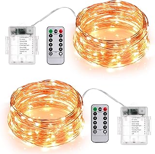 Guirlande Lumineuse à Piles (Inclus) Lot de 20 Étanche Fil en Cuivre 1m avec 10 LEDs Blanc Chaud pour Décoration Anniversaire, Fête, Mariage, Soirée,Noël, Jardin, Terrasse, Pelouse