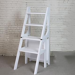 RMJAI Tabouret escabeau Échelle Tabouret Tabouret En Bois Massif Ménage Deux Étapes Pliant Échelle Cuisine Double Usage Trois Couches Escalier Tabouret Échelle Marchepied (Color : White)
