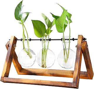 beijieaiguo Hydroponique Vintage Vase Pot De Fleurs Transparent Tabletop Ampoule De Verre Vase De Bureau en Verre Suspendu Balance Planteur Ampoule Vase avec Cadre en Bois Style 2