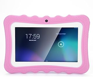 Tablette Enfants, 7 Pouces WiFi Tablette Tactile Protection des Yeux Quad Core Tablette PC avec 8Go ROM, 512M RAM, Double Caméra, Étui en Silicone, Batterie Rechargeable Support 32G Carte TF.(Rose)
