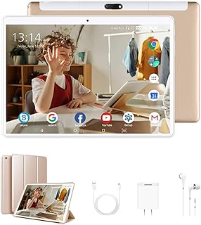 4G Tablette Tactile 10 Pouces WiFi 4GO RAM 64GO/128Go ROM Quad Core Tablette Android 9 avec Stylet Tactile OTG et Google Play 5MP+8MP Caméra Dual Carte SIM Tablette PC Portable Pas Cher(Or)