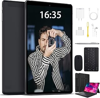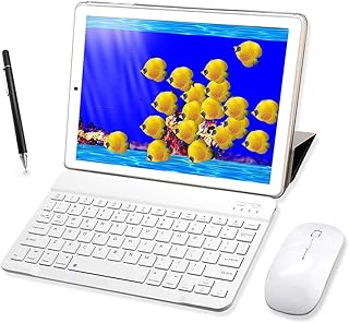 Tablette Tactile 10 Pouces Android 10 Tablette avec Clavier et Souris, 4 Go RAM, 64 Go ROM/128 Go Extensible, Quad-Core 1,6 GHz, 5G WiFi, Double Caméra 2+5 MP, 6000 mAh, Bluetooth, OTG, Type-C